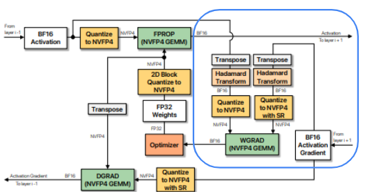 As we covered in Part 1, there are many auxiliary ops needed to stabilize the numerics of NVFP4 training.